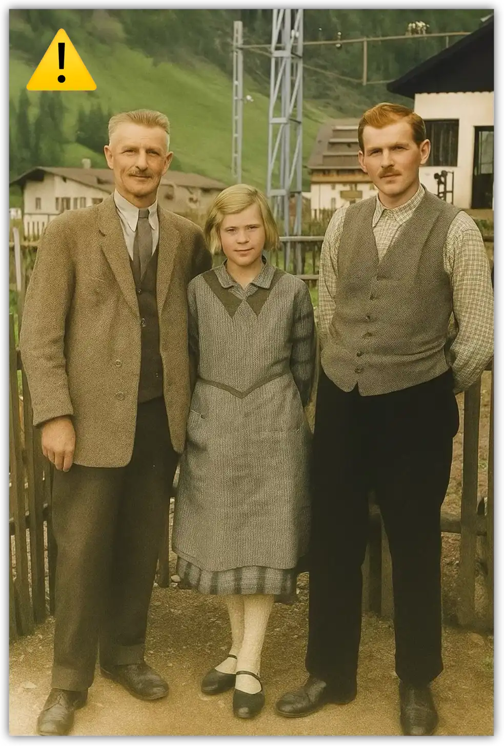 Das Originalfoto weist eine starke Verblassung sowie ein körniges und unscharfes Erscheinungsbild auf. Die im Hintergrund erkennbare Bahnstrecke steht im Zusammenhang mit der Familie (Angestellte bei der Bahn). Daher wurde der Hintergrund lediglich minimal weichgezeichnet, um die Personen stärker hervorzuheben. Um den Personen mehr Raum zu geben, wurde das Bild links und rechts erweitert. Zusätzlich erfolgte eine KI-gestützte Detailverbesserung des Fotos (inklusive Face Recovery).