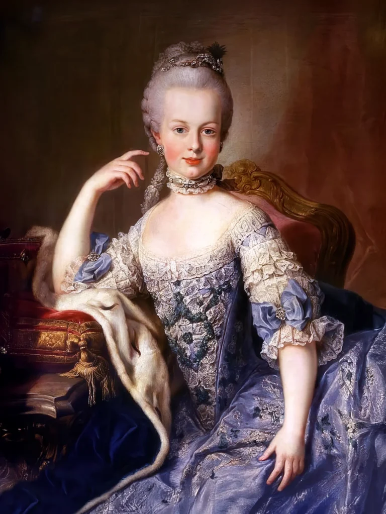 Das Porträt „Maria Josepha von Österreich“ (JPEG-Datei von Wikimedia Commons) weist trotz guter Auflösung starke JPEG-Komprimierung und deutliche Verfärbungen auf.